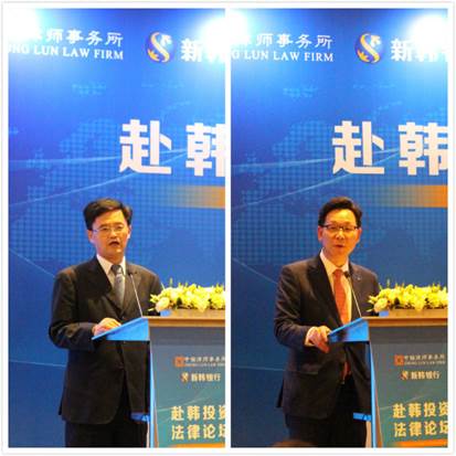 25日下午两点,中伦合伙人宋成哲律师作为本次论坛的主持人宣布“赴韩投资法律论坛”正式开始。中伦合伙人、青岛分所主任孙芳龙律师与新韩银行副行长崔炳化分别进行了致辞。