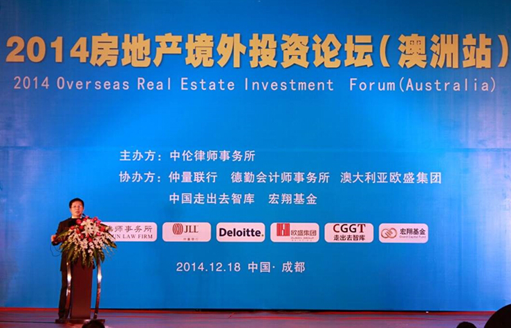 12月18日由中伦律师事务所成都办公室主办,仲量联行、德勤会计师事务所以及宏翔基金等单位协办的“2014境外房地产投资论坛(澳洲站)”在成都香格里拉酒店举行。中伦成都办公室合伙人闫小川律师首先进行了欢迎致辞,合伙人邓国林律师就投资澳洲房地产项目的法律环境及市场分析,澳元基金投资的相关情况,投资税务策略等相关问题,与200余名参会嘉宾进行了直接交流。此次论坛还特别邀请了四川省发改委、商务部门、澳大利亚领事、律师、投行、会计师、房地产界等业内外的专家和精英人士共同参会,大家在轻松的氛围中分享了投资境外房地产项目应掌握的专业信息。