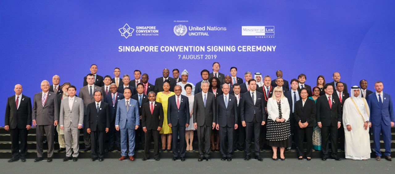 2019年8月7日,《联合国关于调解所产生的国际和解协议公约》(下称“《新加坡调解公约》”)签署仪式在新加坡举行。新加坡总理李显龙、联合国秘书长法律事务助理Stephen Mathias出席公约签署仪式并发表演讲,联合国秘书长古特雷斯通过视频发表讲话。来自67个国家和地区的代表团参加了签署仪式,包括中国、美国、新加坡在内的46个国家签署了公约。