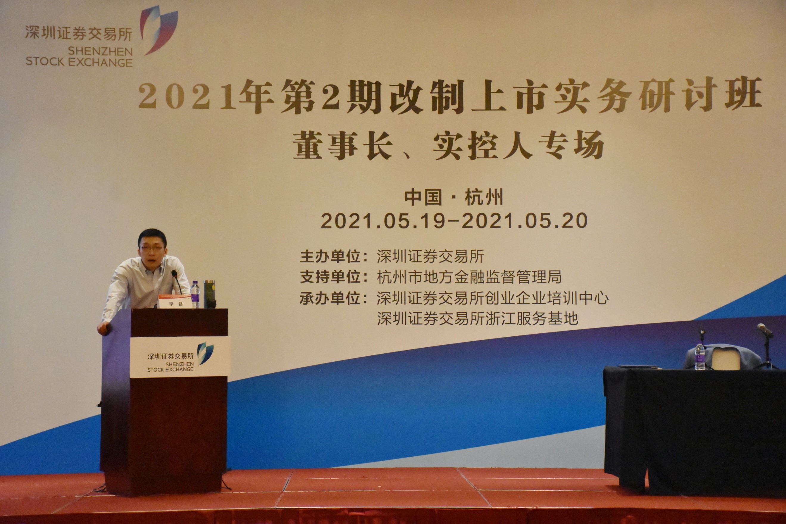 2021年5月19日至20日,深圳证券交易所在杭州举办2021年第2期改制上市实务研讨班培训(董事长、实控人专场)。中伦律师事务所合伙人李磐律师应邀授课,以《注册制下法律审核重点问题》为题与50余名学员进行了分享。