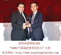2006年3月,《亚洲法律事务》杂志(Asia Legal Business)举办了“The 2006 ALB China Law Awards” 颁奖典礼,中伦张学兵律师获“2005中国最佳管理合伙人”大奖,这是中伦2005年获“中国最佳房地产律师事务所”大奖和2004年获“中国最佳建筑工程律师事务所”大奖之后,再次在该颁奖活动中获奖。