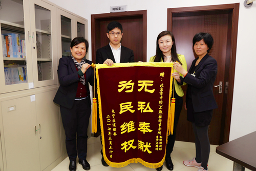 在本案代理过程中,合伙人孙彬彬及团队律师李宏杰秉持着专业律师的社会责任意识,完成了本案从公开约谈、起诉立案、财产保全到调查取证、案件审理、判决履行的全程工作,获得了上海市消保委、长宁区消保委的高度赞扬及消费者的由衷感谢,长宁区消保委、当事人消费者向中伦及两位律师分别赠送标语为“无私奉献、为民维权”和“法律援助、为民解忧”的两面锦旗以表感谢。