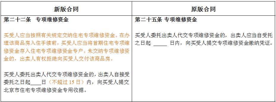 新增提示买受人应缴纳专项维修资金的义务;增加出卖人受托支付专项维修资金的时间期限。