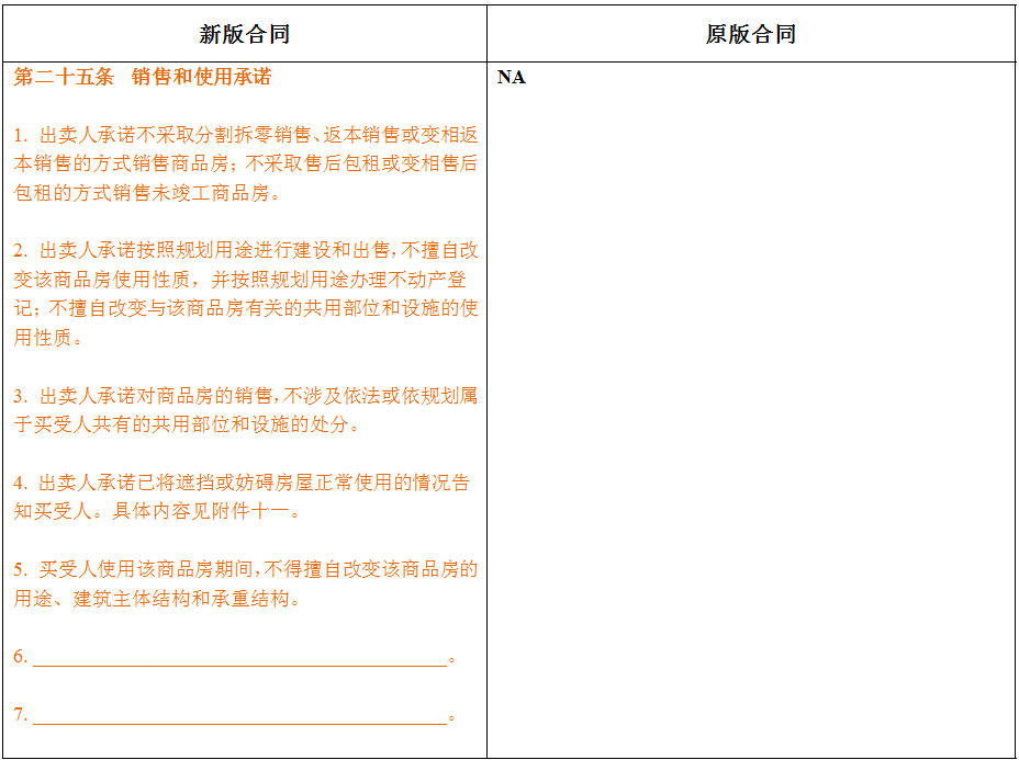 此次示范文本的修改以列举方式梳理了出卖人对买受人应承诺的事项,并提示约定买受人使用商品房时应作出不得擅自改变该商品房的用途、建筑主体结构和承重结构的承诺,实践中还存在部分需由当事人双方承诺的使用商品房期间应作出的承诺,建议在正文或补充协议中约定双方的进一步完善应作出的相应承诺。