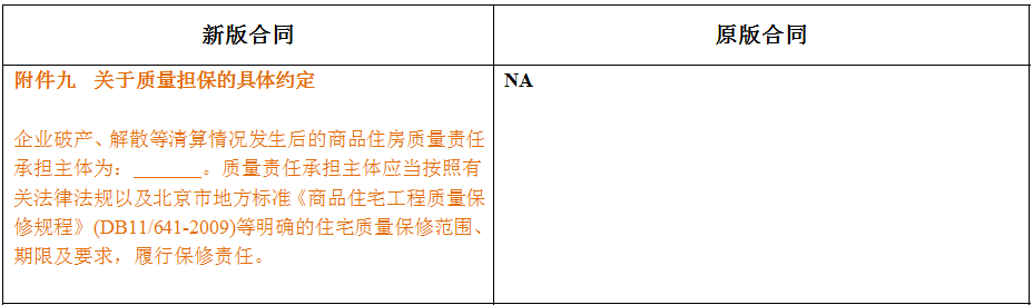 根据《北京市建设工程质量条例》,增加了建设单位应按照北京市有关规定投保建设工程质量潜在缺陷责任保险、办理住宅工程质量保修担保的约定。