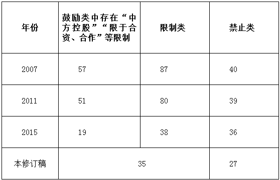 本修订稿与2015年版本《目录》相比较,未新增限制类与禁止类的行业,并进一步放开了外商投资准入的一些行业,包括将7个限制类条目调整为允许类,取消了鼓励类中7个条目的股比和国籍要求,并将部分调整为允许类,具体如下: