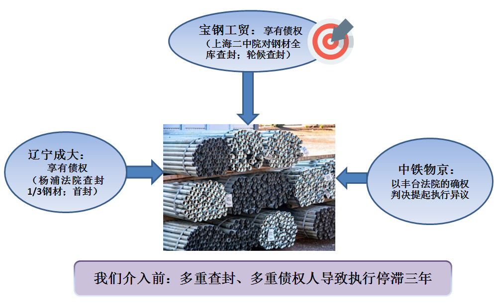 本案起于全国“钢贸危机”大规模集中爆发之际,因涉案金额数亿元,成为宝钢集团不良资产处置要案。该案进入司法强制执行阶段后,由于案情复杂,且涉及北京、上海、福建、江苏等多家异地法院执行权交叉,和央企、国企、银行等多重债权人利益分配冲突,导致案件停滞三年不前,陷入困境。
