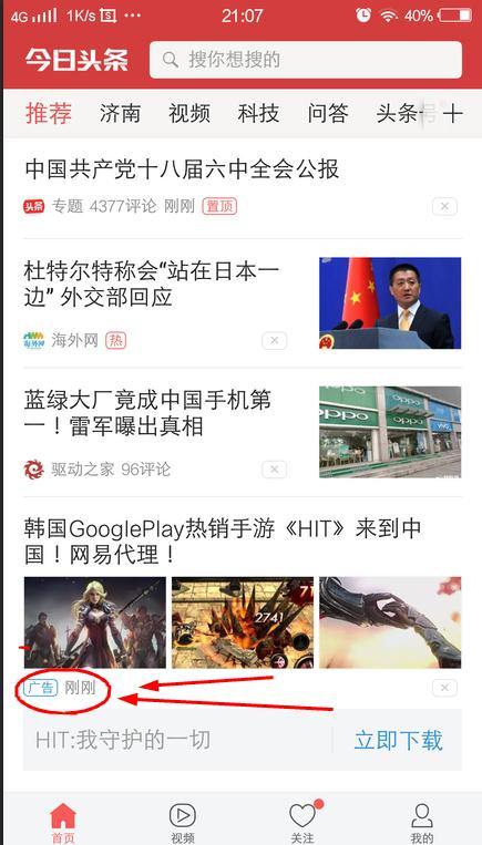 今日头条中的信息流广告: