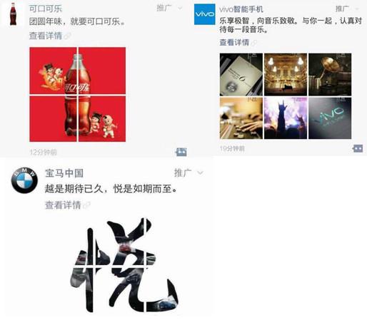 微信朋友圈中的信息流广告:
