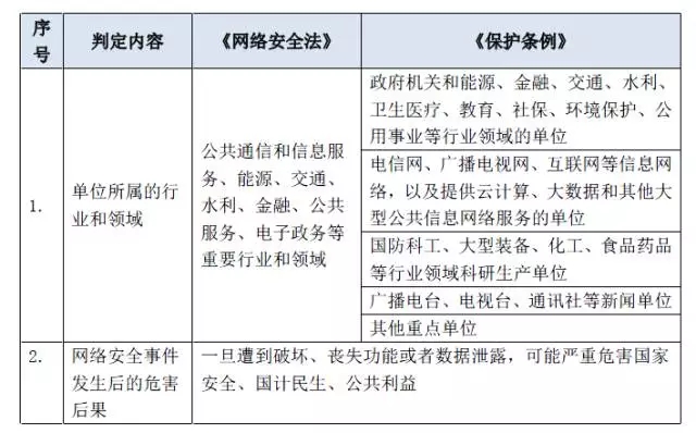 《保护条例》第18条沿用了《网络安全法》第31条的规定,通过“非穷尽列举行业和领域+危害后果”的方式,给出了CII的范围,各企业可以依据下表初步评估所属网络系统是否构成CII。