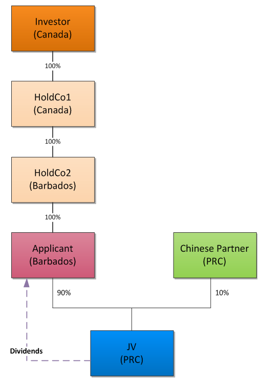 - The Applicant did not have substantive operation activities other than holding the investment in the PRC JV.