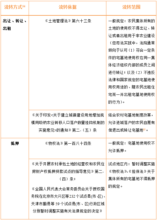 综上,我们将现行法律及政策中对宅基地使用权流转方式的规定总结如下: