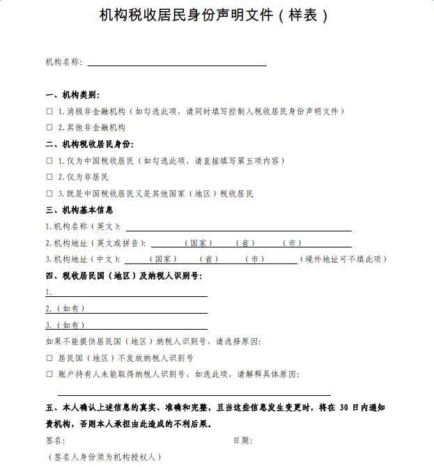 政府机构、国际组织、中央银行、金融机构或者在证券市场上市交易的公司及其关联机构,以及事业单位、军队、武警部队、居委会、村委会、社区委员会、社会团体等单位无需填写此声明文件。