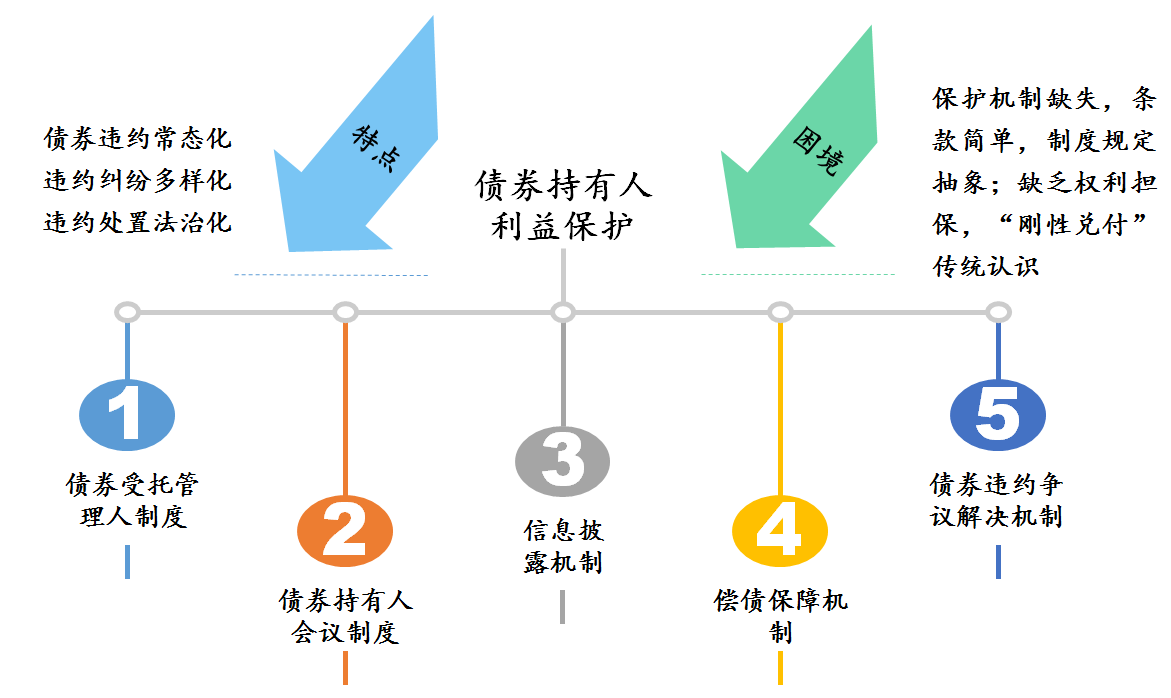 就既有的债券持有人利益保护机制而言,中国证券监督管理委员会(下称“证监会”)2014年颁布的《公司债券发行与交易管理办法》专设“债券持有人权益保护”一章,较为系统地规定了债券受托管理人制度、债券持有人会议制度、信息披露机制、偿债保障机制以及债券违约救济等,初步建立了债券持有人利益保护机制。在债券发行实践中,债券募集说明书也通常会专设“偿债计划及其他保障措施”、“债券持有人会议”、“债券受托管理人”等章节,载明债券持有人权益保护的相关条款。从债券违约发生后的处置实践来看,债券持有人也已经开始主动或者被动地通过诉讼、仲裁、破产重整等争议解决途径寻求救济,法治化特征趋于明显。