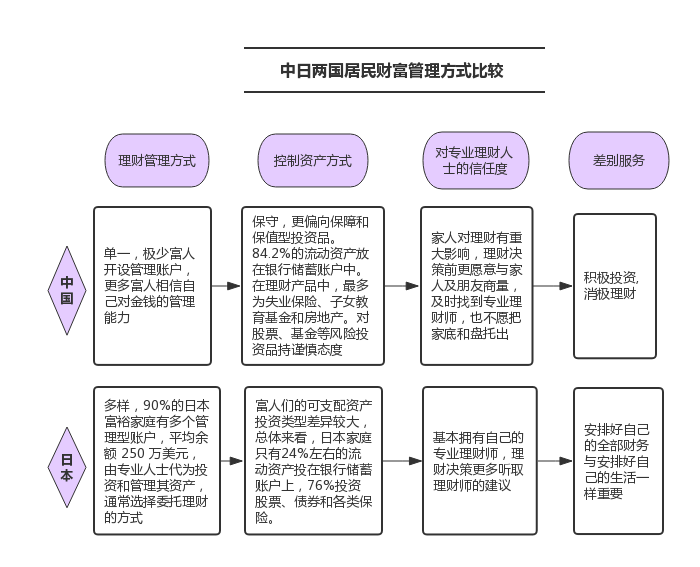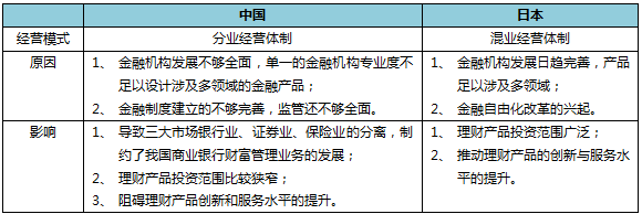 在了解商业银行财富管理业务概念、范围以及特点的基础上,该部分重点分析中日商业银行财富管理业务的差异,主要体现为以下几方面。