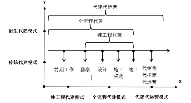(3)代建代运营模式:除了工程建设外,代建工作还延伸至后续的代销售、代招商、代运营阶段的一项或多项内容。