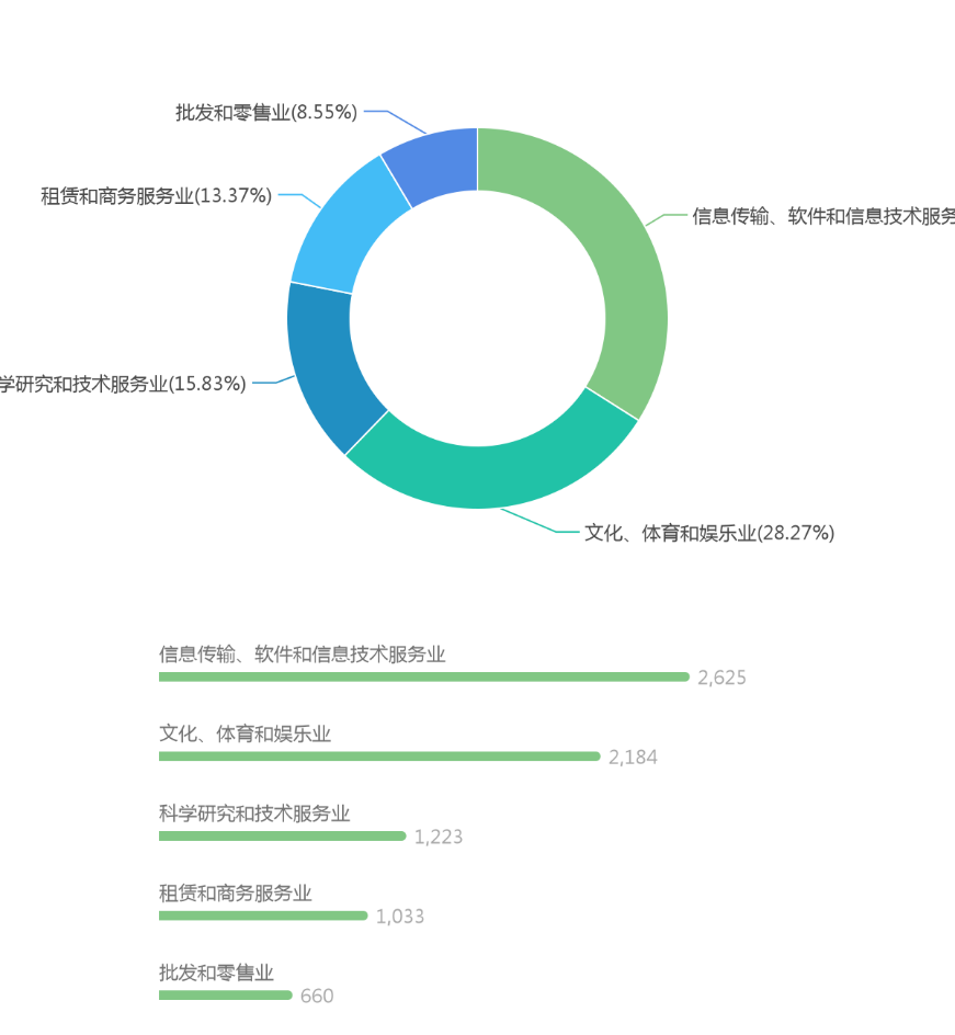 从“恶意规避技术措施”类型计算机软件侵权的行业分类情况可以看到,相关著作权权属、侵权纠纷案件的行业分布主要集中在信息传输、软件和信息技术服务业,文化、体育和娱乐业,科学研究和技术服务业,租赁和商务服务业,批发和零售业。