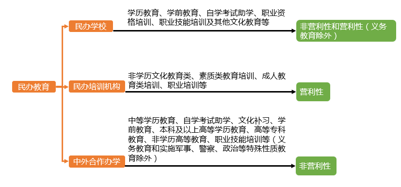 在现行有效的法律法规和实务背景下,民办学校、民办培训机构、中外合作办学机构从事的业务内容主要如下: