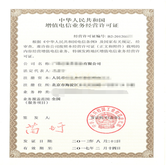 根据其拟提供信息服务的地域范围分别向省、自治区、直辖市电信管理机构或者国务院信息产业主管部门申请办理互联网信息服务《增值电信业务经营许可证》。《增值电信业务经营许可证》样本如下图所示:
