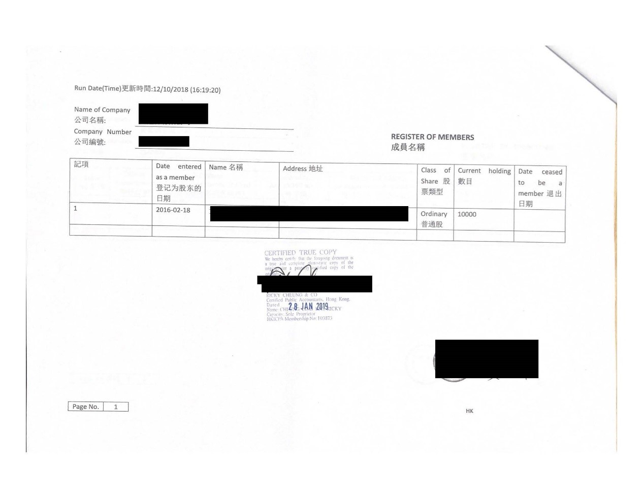 香港公司的成员登记册是判断股东享有公司股份法定所有权(legal title)的终局性证据,而股东登记册的变更并不要求随时向公司注册处申报,仅需在公司每年一度的周年申报表(Annual Return)中反应公司的最新股权情况。另外,如存在股份代持的情况,股份的实益所有权人(beneficial owner)不会出现在成员登记册上,代持契据(Declaration of Trust)亦不会向公司注册处申报。