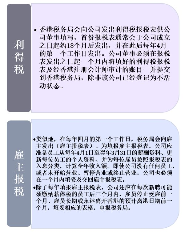 香港公司需要缴纳利得税,并向税务局申报员工的相关薪俸资料,介绍如下: