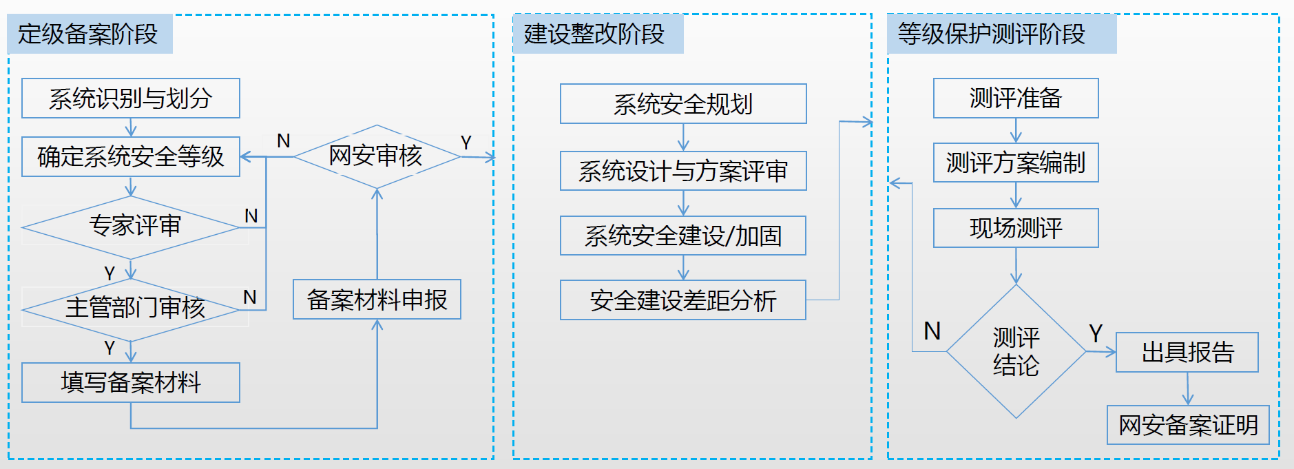 确定等级保护对象,确定安全保护等级,编制定级备案材料。 |
