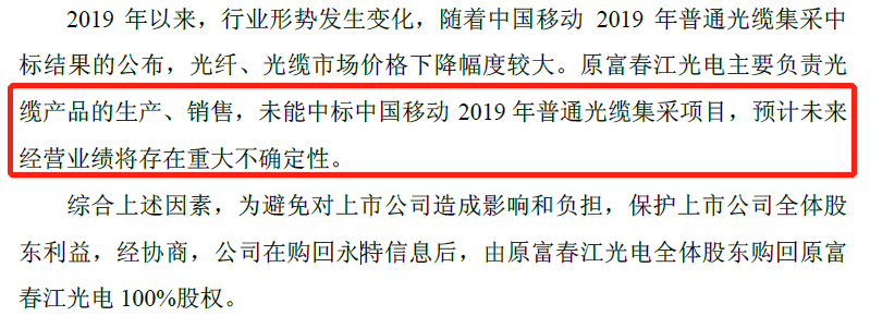 根据上述承诺,本次交易完成后,永特信息将聚焦于光棒和光纤的生产和销售,富春江光电将聚焦于光缆、光器件的生产销售,富春江光电生产的光纤仅能销售给永特信息。