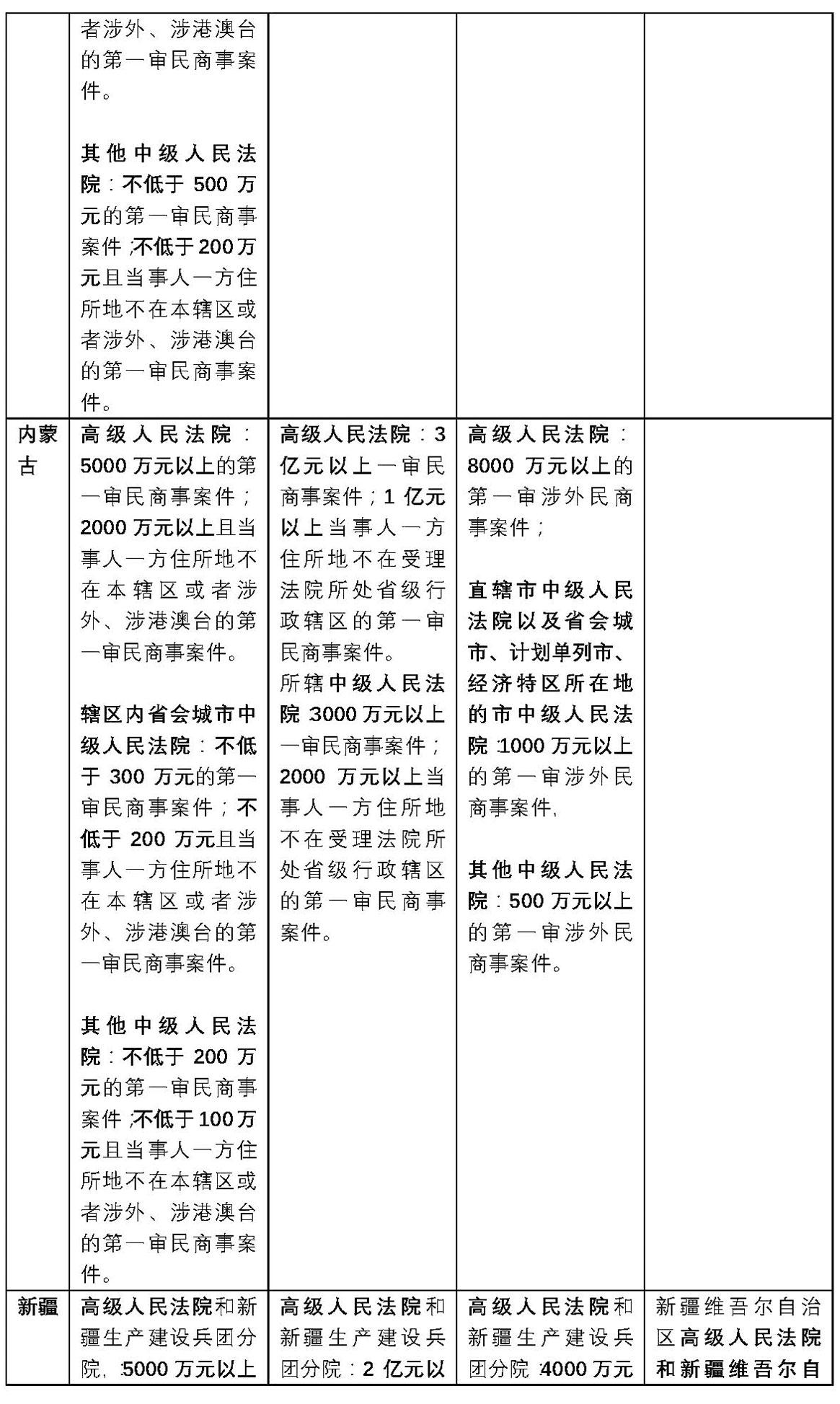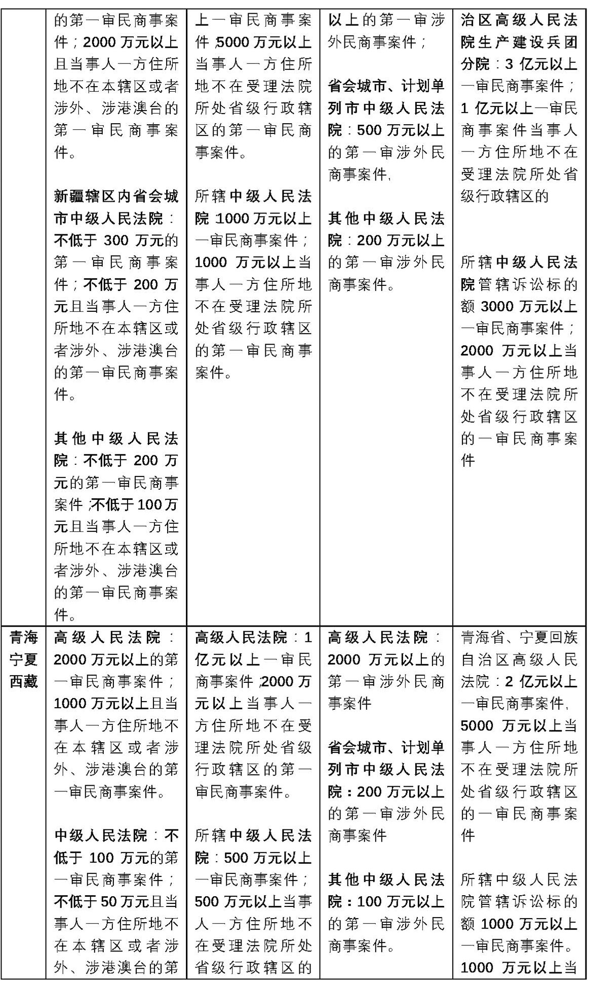 从2019年5月1日之前各地执行的情况来看,中级人民法院管辖第一审民商事案件的诉讼标的额上限,均未超过5亿元。此次最高法下发的“法发[2019]14号”文件,将各地中院管辖此类案件的诉讼标的额上限调整为50亿元。相比此前的标准,其提升幅度达到10倍。