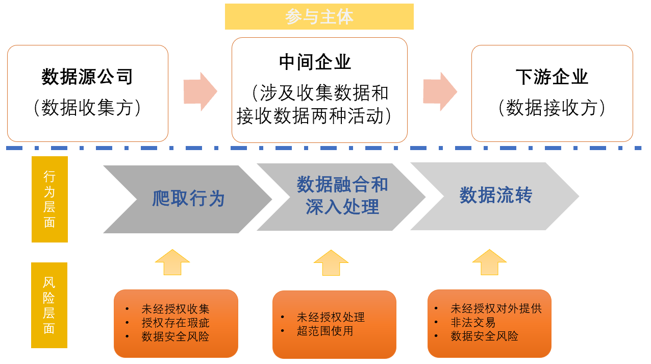 图:企业参与数据产业链上下游中的角色、行为、风险