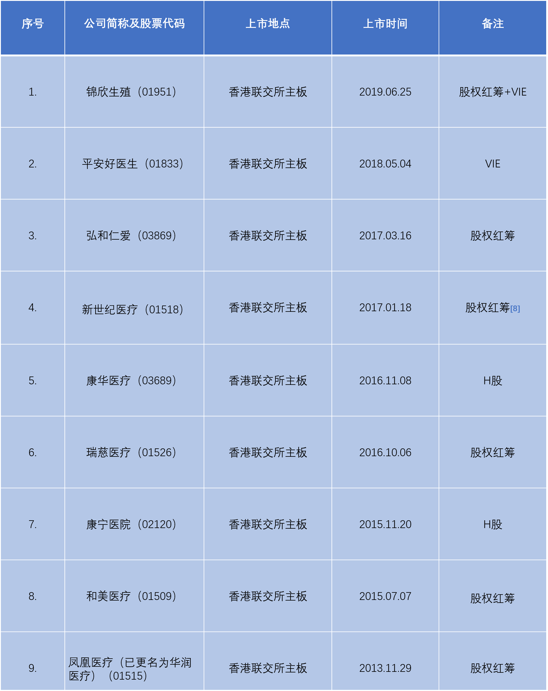 [9] 平安好医生完全采用VIE红筹架构港股上市为特例,因平安好医生实质上为互联网公司而非典型的医疗机构。