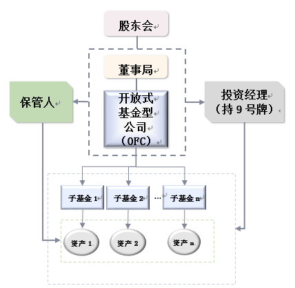 OFC的架构如上图所示。其组织结构除股东会和董事局之余,还必须设置保管人和投资经理。
