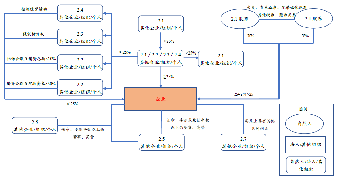 2.1一方直接或者间接持有另一方的股份总和达到25%以上;双方直接或者间接同为第三方所持有的股份达到25%以上。
