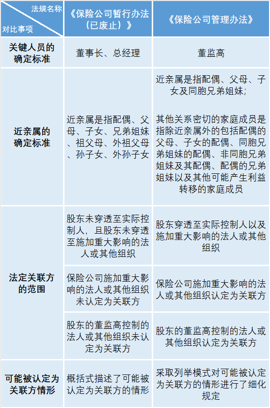 保险公司暂行办法(已废止)》与《保险公司管理办法》关联方对照表