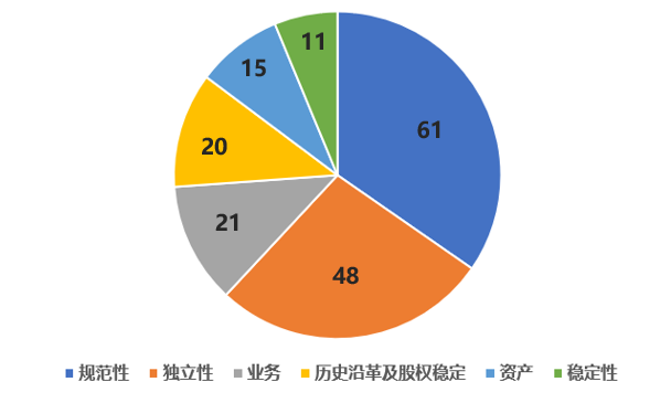 为解决历史上国有企业部分改制上市带来的大股东通过关联交易和同业竞争损害上市公司利益问题,证监会要求拟上市企业要做到“三分开”、“五独立”,不允许存在较多关联交易和同业竞争问题的企业发行上市。虽然在2016年《首发管理办法》的修订中,证监会认为独立性带来的问题和矛盾已经基本解决,不需要作为发行上市的门槛,但是改用披露方式监管独立性问题后,这部分的审核标准并没有实质性的降低。从上面的数据也可以看出,独立性这部分虽然是常规问题,但“点击率”却一直很高。