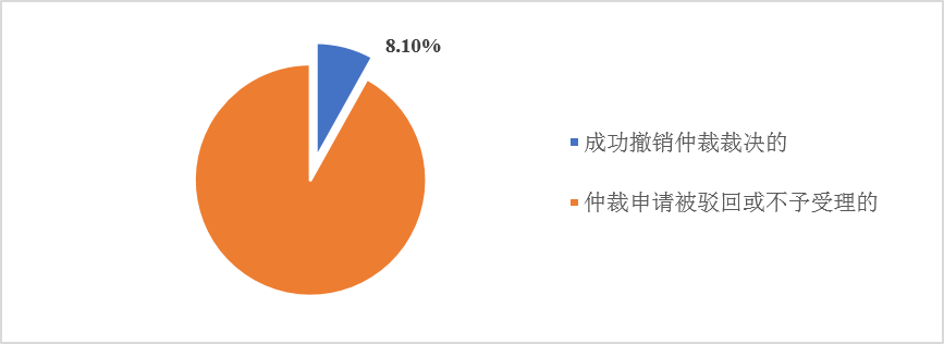 [v] 282个非体育仲裁裁决撤销申请中,最终有20个取得成功。