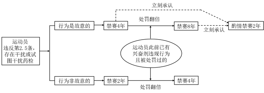 图五:违反《世界反兴奋剂条例》第2.5条法定禁赛期限示意图