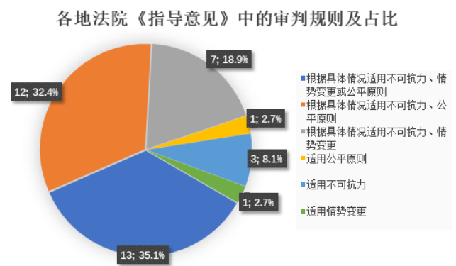 主要从是否构成不可抗力的角度进行认定,共有3份《指导意见》采用此规则,占比8.1%。
