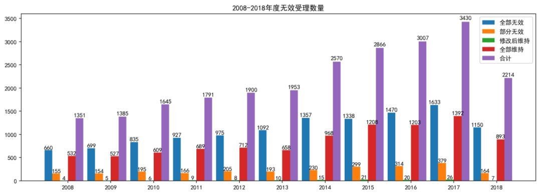 [13] 近10年来,无效请求数量呈逐年递增的趋势,并且每年宣告专利全部无效的案件数量都占当年无效申请案件总量的50%左右,如果加上部分无效以及修改后维持的案件,至少部分被宣告无效的决定占比都大于或约等于60%。《2008-2018年度中国专利无效案件统计分析报告》https://www.sohu.com/a/293164554_656884