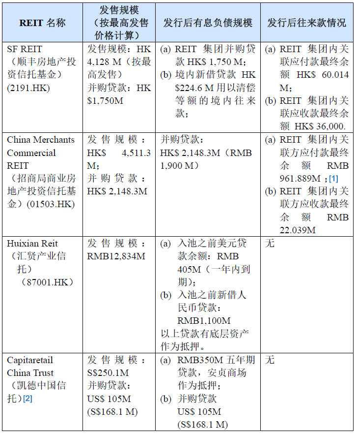 (i) 如果完全是境内关联方之间形成的往来款,考虑用项目公司新借银行借款来偿还。SF REIT入池项目公司境内形成的应收款HK$118,000以及应付款HK$224.7million就是用境内项目公司借入境内银行贷款的方式进行了清理;