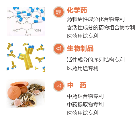 此处更需要关注的问题是上述“相关专利”的范围。众所周知,原研药企作为专利权人,通常会围绕核心化合物有计划地申请一系列专利以寻求“专利常青”(即在原始专利的基础上策略性地提交专利申请,利用专利法及相关法规延长其市场垄断权[3])。如果在仿制药上市申请获批之前允许专利权人发起救济措施,而不对专利权人可主张的专利权范围加以明确和限制,将可能不当阻碍仿制药上市。本次《实施办法》明确规定,化学药、中药、生物药可登记的专利如下图所示。