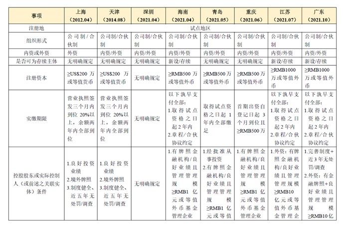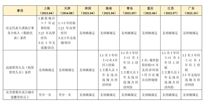 (二) 各QDLP/QDIE试点地区政策对比