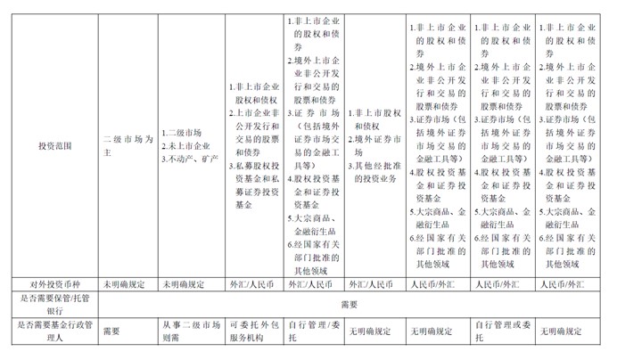 QDII投资范围限于境外二级市场;而QDLP/QDIE视试点地区具体政策而定,可投资境外二级市场和境外一级市场。QDLP/QDIE制度下更宽松的投资范围可以给资产管理机构更大空间。