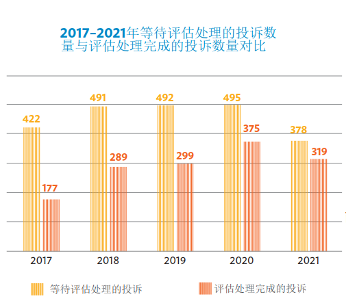值得关注的是,OAI在2021年着力推进投诉处理流程、大幅提升了投诉的处理速度,2021年度仅余59起投诉未被处理,是上一年度积压投诉数量的一半,也是近五年剩余数量最少的一次。