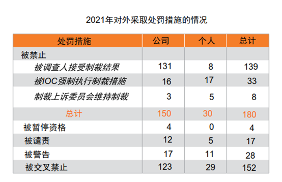 2021年度,在处以禁令制裁措施的35起案件中,被制裁对象涉及180个主体(包括150家企业和30名个人)。这一数字相较去年有大幅度上升:2020年亚开行决定采用禁令制裁措施处理的30起案件仅涉及120个主体(包括89家企业和31名个人)。