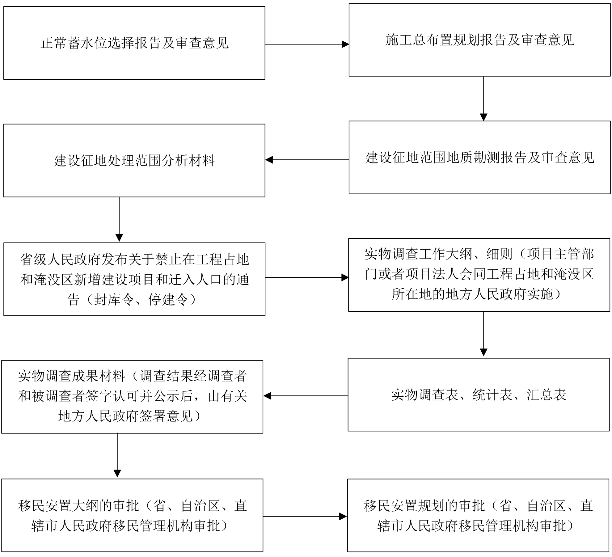 根据《国家档案局、水利部、国家能源局关于印发水利水电工程移民档案管理办法的通知》(档发[2012]4号)、《大中型水利水电工程建设征地补偿和移民安置条例》的规定,抽水蓄能电站在取得移民安置规划审批文件前的主要工作流程如下: